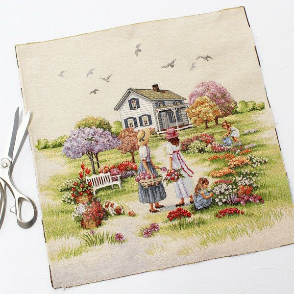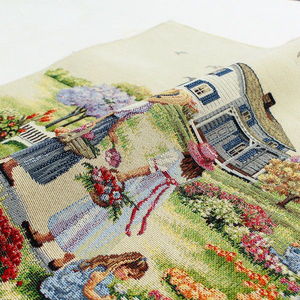 インポート ゴブラン 厚地 生地 輸入 インテリア ゴブラン織 生地 インテリア パネル 庭園 ヨーロッパ輸入 約47×47cm パネル