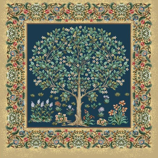 インポート ゴブラン 厚地 生地 輸入 インテリア ゴブラン織 生地 インテリア パネル 木 ブルー ヨーロッパ輸入 約47×47cm パネル