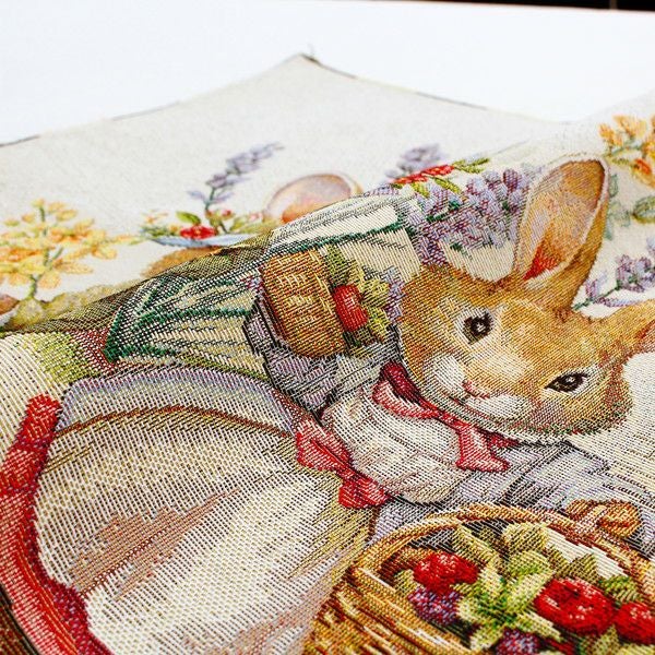 インポート ゴブラン 厚地 生地 輸入 インテリア ゴブラン織 生地 インテリア パネル 双子のうさぎ ヨーロッパ輸入 約47×47cm パネル