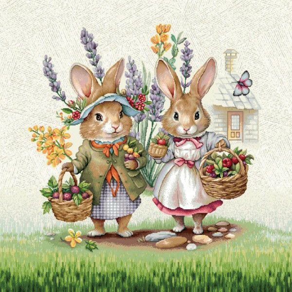 5. ゴブラン織 生地 インテリア パネル 双子のうさぎ ヨーロッパ輸入 約47×47cm パネル