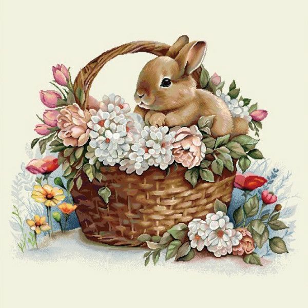 5. ゴブラン織 生地 インテリア パネル お花とうさぎ ヨーロッパ輸入 約47×47cm パネル