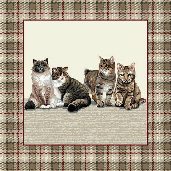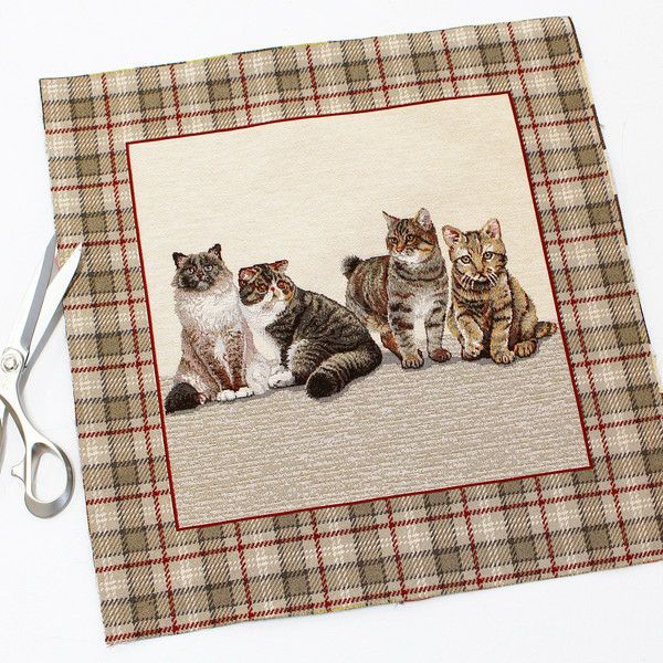 5. ゴブラン織 生地 インテリア パネル チェック ネコ ヨーロッパ輸入 約47×47cm パネル