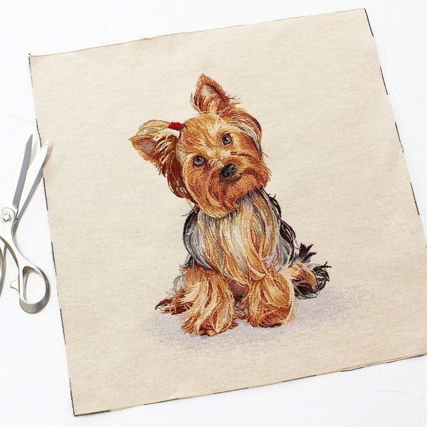 インポート ゴブラン 厚地 生地 輸入 インテリア ゴブラン織 生地 インテリア パネル ヨークシャーテリア 犬 ヨーロッパ輸入 約47×47cm パネル