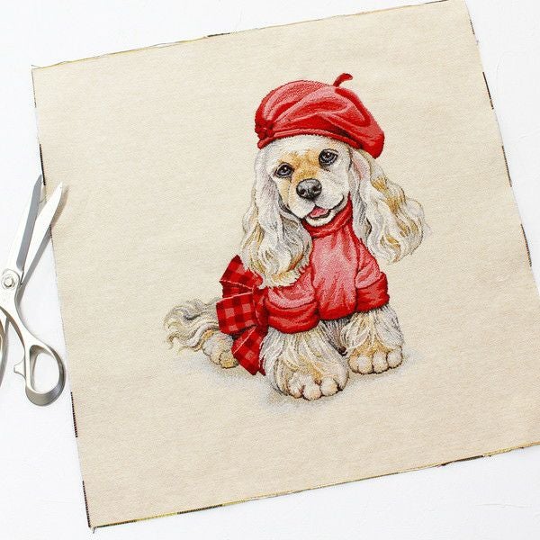 インポート ゴブラン 厚地 生地 輸入 インテリア ゴブラン織 生地 インテリア パネル オシャレをした犬 ヨーロッパ輸入 約47×47cm パネル