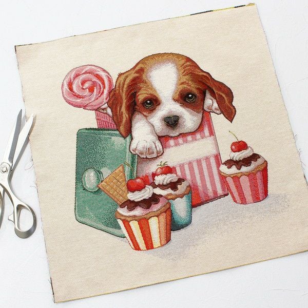 5. ゴブラン織 生地 インテリア パネル キャバリア お菓子 ヨーロッパ輸入 約47×47cm パネル