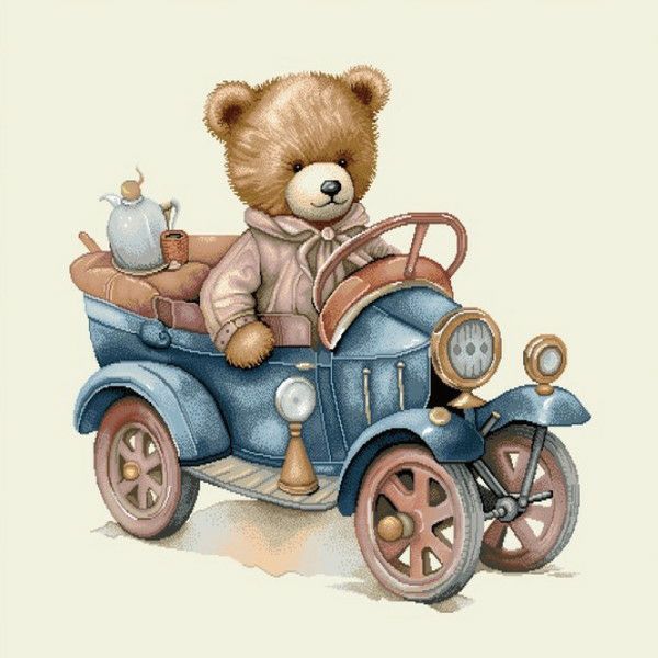 5. ゴブラン織 生地 インテリア パネル テディベア 自動車 ヨーロッパ輸入 約47×47cm パネル
