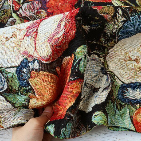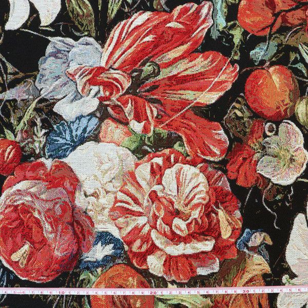 ゴブラン 生地 インポート インテリア ゴブラン織り ブラック地花と実140cm巾 (最低単位50cm~10cm単位の切売) | 手芸材料のネットショップ つくる楽しみ.com