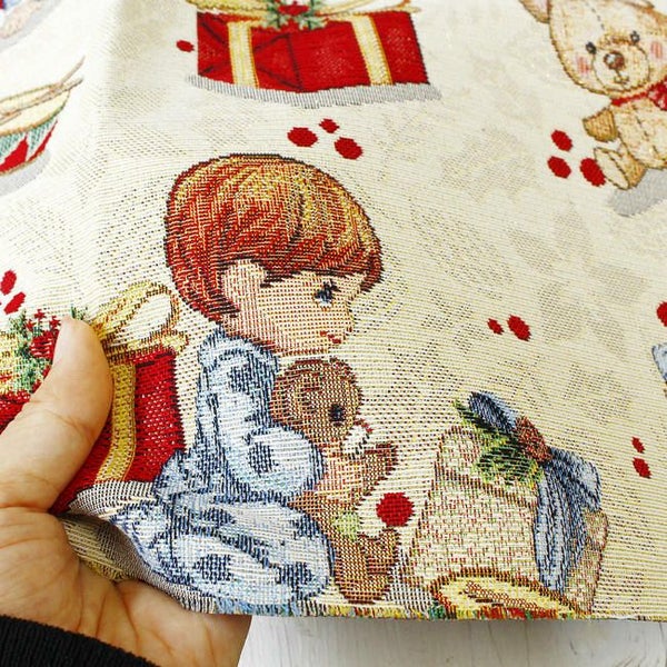 ゴブラン 生地 インポート インテリア ゴブラン織り クリスマス キッズ テディベア ゴブラン 140cm巾 (最低単位50cm~10cm単位の切売り)