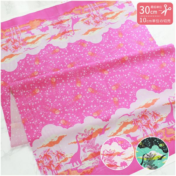 - 輸入生地 生地 輸入生地 USA生地 USAプリント生地 恐竜と星 チュラピンク FreeSpirit フリースピリット(最低単位30cm~10cm単位の切り売り)