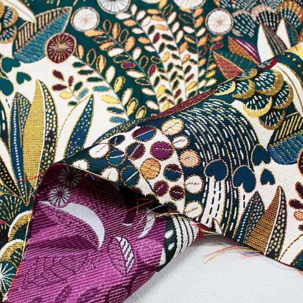輸入生地 生地 サフェコ ジャガード生地 草花 ジャングル Jacquard ジャガード 生地 SAFECO from france インポート 幅約140cm (最低単位30cm~10cm単位の切売り) | 手芸材料のネットショップ つくる楽しみ.com