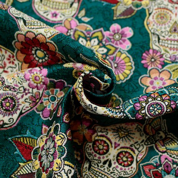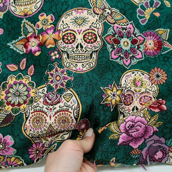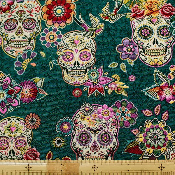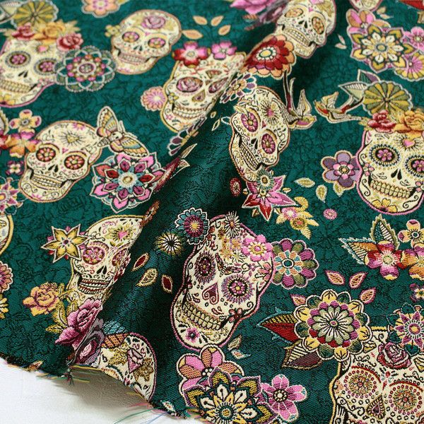 輸入生地 生地 サフェコ ジャガード生地 ドクロ スカル メキシコ Jacquard ジャガード 生地 SAFECO from france インポート 幅約140cm (最低単位30cm~10cm単位の切売り) | 手芸材料のネットショップ つくる楽しみ.com