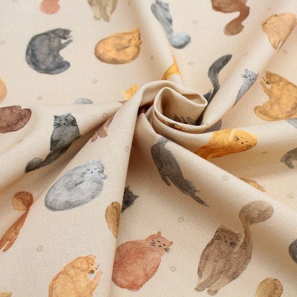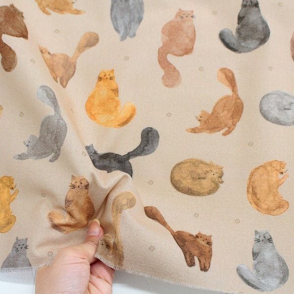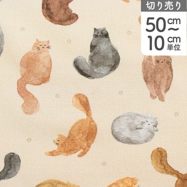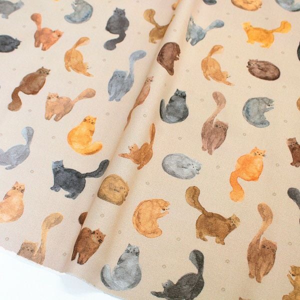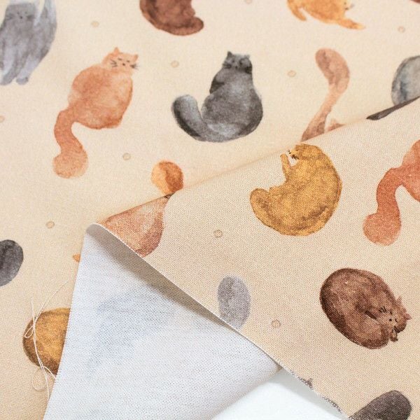 輸入生地 生地 インポート 水彩猫 オックス生地 デジタルプリント オランダ輸入 140cm巾 (最低単位50cm~10cm単位の切り売り) | 手芸材料のネットショップ つくる楽しみ.com