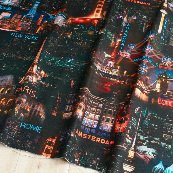 生地 輸入生地 世界の夜景オックス生地デジタルプリントオランダ輸入140cm巾(最低単位30cm~10cm単位の切り売り) | 手芸材料のネットショップ つくる楽しみ.com
