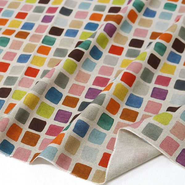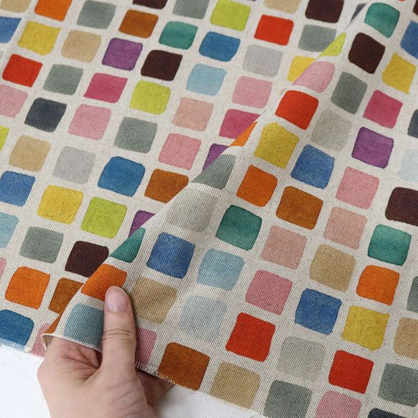 輸入生地 スペイン輸入 オックスデジタルプリント 生地 四角 綿麻風インクジェットオックス 生地 約巾140cm (50cm~10cm単位の切り売り) | 手芸材料のネットショップ つくる楽しみ.com