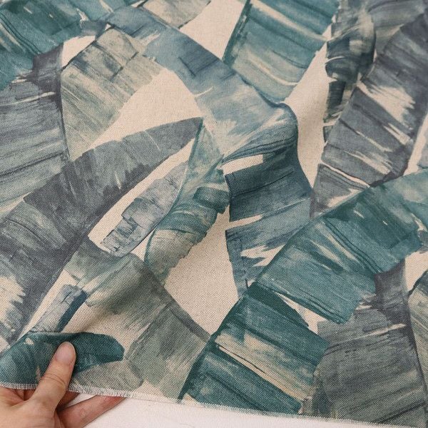 輸入生地 スペイン輸入 オックスデジタルプリント 生地 葉 ブルー 綿麻風インクジェットオックス 生地 約巾140cm (50cm~10cm単位の切り売り)