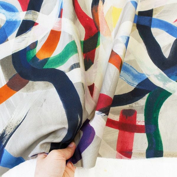 輸入生地 生地 インポート ライン スペイン輸入 オックスデジタルプリント 生地 カラフルライン 約巾140cm (最低単位50cm~10cm単位の切り売り) | 手芸材料のネットショップ つくる楽しみ.com