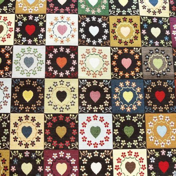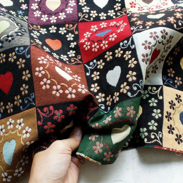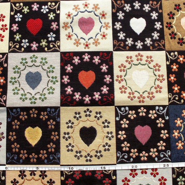 ゴブラン 生地 インポート インテリア ゴブラン織り 四角の中にハート 140cm巾 (最低単位50cm~10cm単位の切売) バレンタイングッズ | 手芸材料のネットショップ つくる楽しみ.com