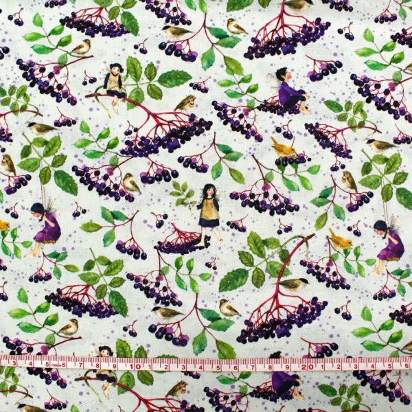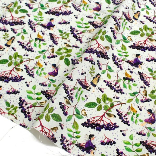 アクファクトゥム acufactum 女の子とベリー プリント生地 約150cm幅 (最低単位30cm~10cm単位の切り売り) | 手芸材料のネットショップ つくる楽しみ.com