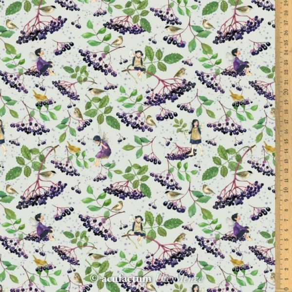 アクファクトゥム acufactum 女の子とベリー プリント生地 約150cm幅 (最低単位30cm~10cm単位の切り売り)
