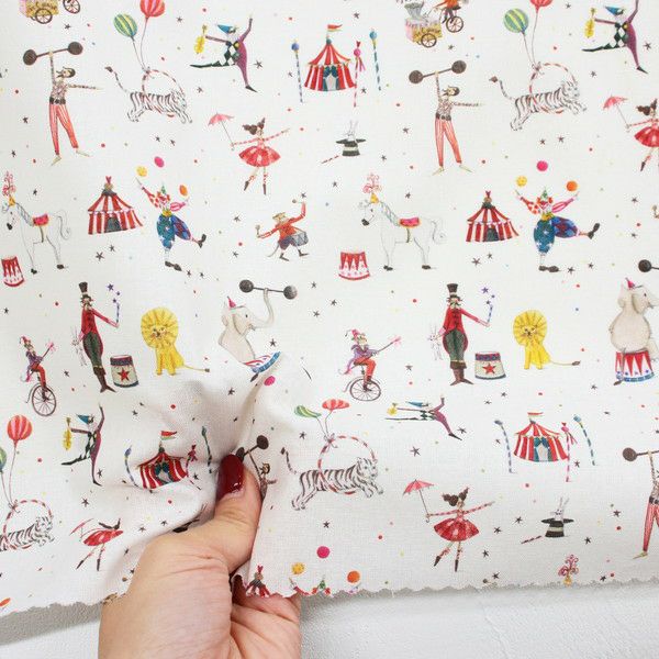 アクファクトゥム acufactum ピエロ サーカス プリント生地 約150cm幅 (最低単位30cm~10cm単位の切り売り) | 手芸材料のネットショップ つくる楽しみ.com