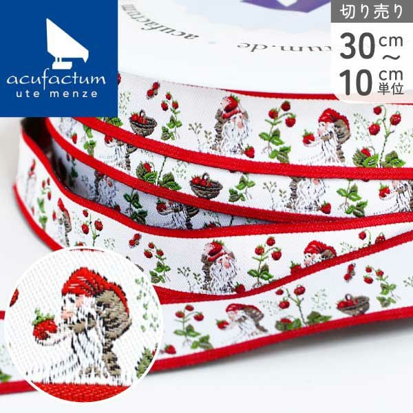 acufactum 織リボン イチゴを運ぶエルフ 赤ライン 約16mm幅 (最低単位30cm~10cm単位の切り売り)