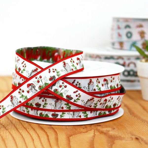 acufactum 織リボン イチゴを運ぶエルフ 赤ライン 約16mm幅 (最低単位30cm~10cm単位の切り売り) | 手芸材料のネットショップ つくる楽しみ.com