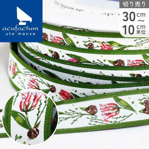 acufactum 織リボン チューリップ 緑ライン 約16mm幅 (最低単位30cm~10cm単位の切り売り) | 手芸材料のネットショップ つくる楽しみ.com