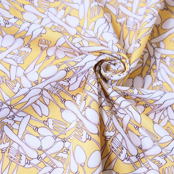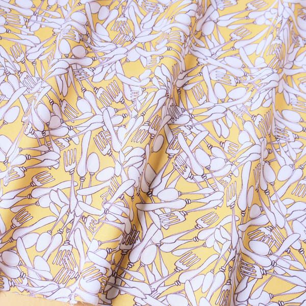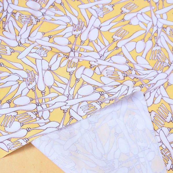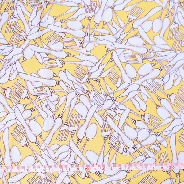 生地 輸入生地 Loralie Designs ローラライデザインズ シェフシリーズ イエロー地 カトラリー総柄 USAプリント (最低単位30cm~10cm単位の切り売り) | 手芸材料のネットショップ つくる楽しみ.com