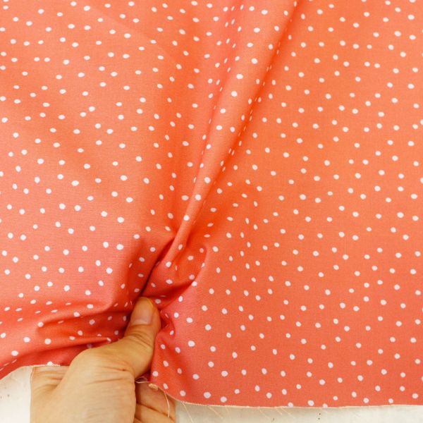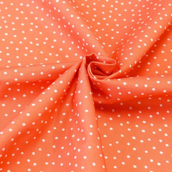 生地 輸入生地 ロラリー Loralie Designs ローラライデザインズ ミニドット柄 ドット柄 オレンジ地 白ドット 巾約110cm (最低単位30cm~10cm単位の切売り) | 手芸材料のネットショップ つくる楽しみ.com