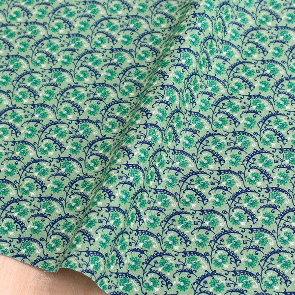 輸入生地 生地 グリーン地 紺模様 白いつぼみ Free Sprit フリースピリット USAプリント (最低単位30cm~10cm単位の切売) | 手芸材料のネットショップ つくる楽しみ.com