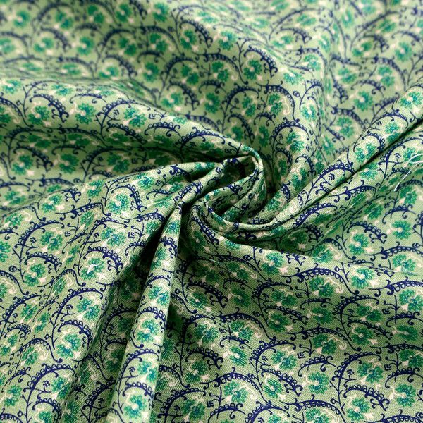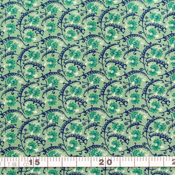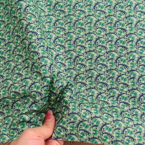輸入生地 生地 グリーン地 紺模様 白いつぼみ Free Sprit フリースピリット USAプリント (最低単位30cm~10cm単位の切売)
