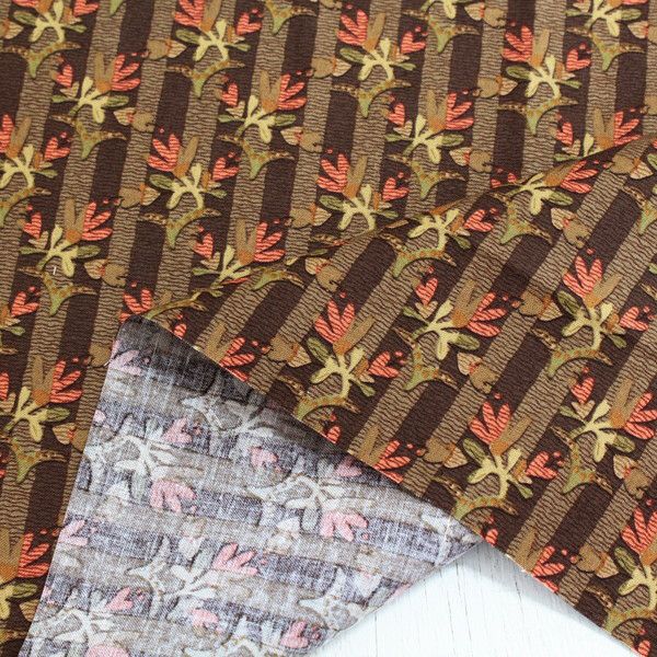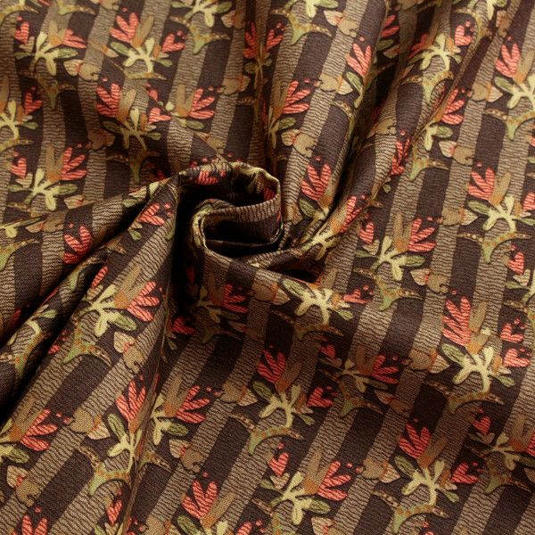 輸入生地 生地 ブラウンボーダー 植物 Free Sprit フリースピリット USAプリント (最低単位30cm~10cm単位の切売)