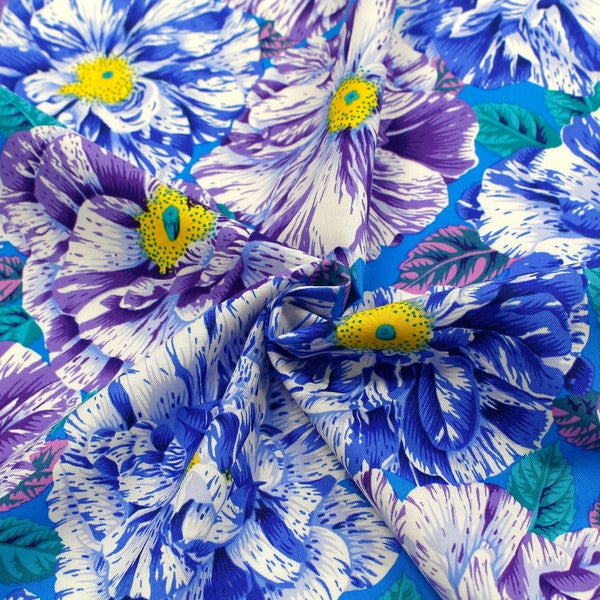 輸入生地 生地 インポート 咲き誇る花 ブルー系 FreeSpirit フリースピリット Kaffe Fassett -ケイフ・ファセット- USAプリント | 手芸材料のネットショップ つくる楽しみ.com