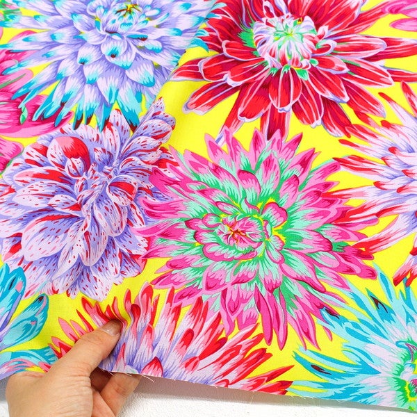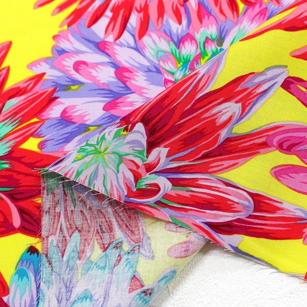 輸入生地 生地 インポート カクタスダリア イエロー地 FreeSpirit フリースピリット Kaffe Fassett -ケイフ・ファセット- USAプリント | 手芸材料のネットショップ つくる楽しみ.com