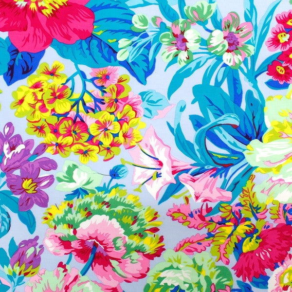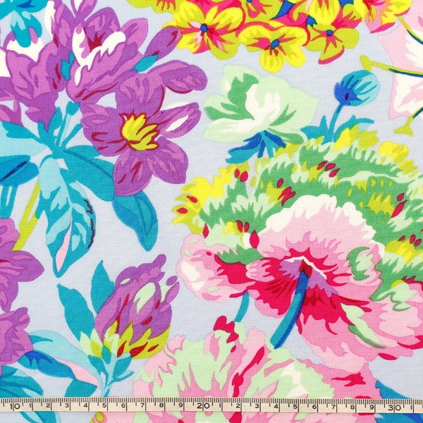 輸入生地 生地 インポート 春爛漫 アクアブルー地 FreeSpirit フリースピリット Kaffe Fassett -ケイフ・ファセット- USAプリント | 手芸材料のネットショップ つくる楽しみ.com