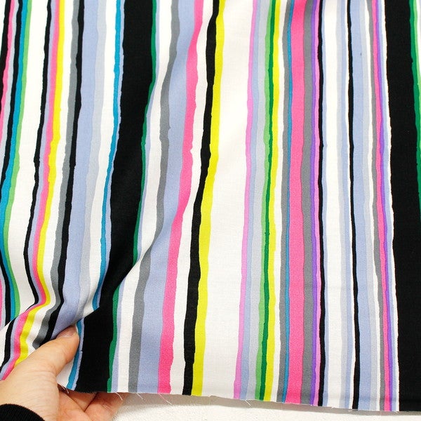 輸入生地 生地 インポート ストライプ ブラック・ピンク・ブルーグレー系 FreeSpirit フリースピリット Kaffe Fassett -ケイフ・ファセット- USAプリント | 手芸材料のネットショップ つくる楽しみ.com