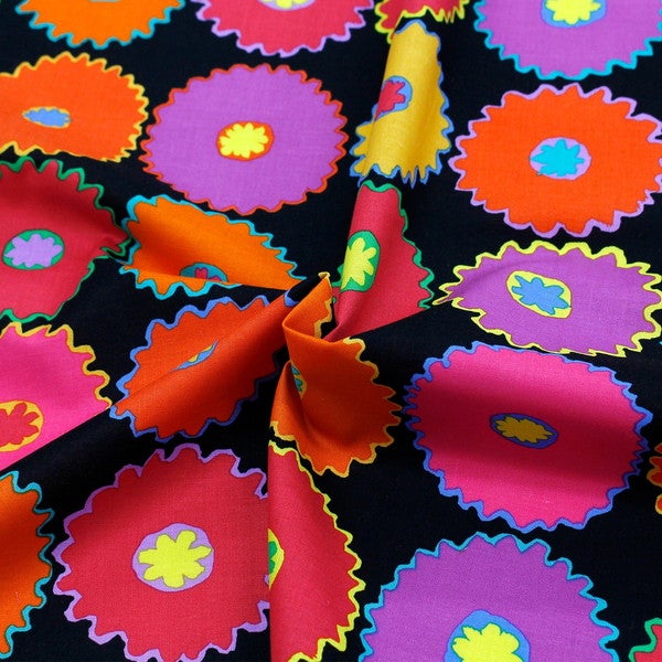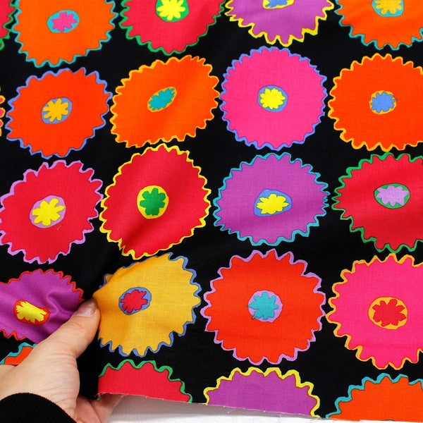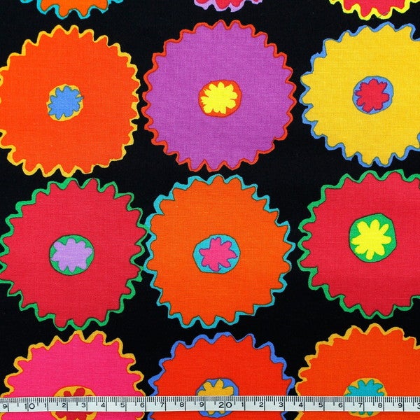 輸入生地 生地 インポート ピンキングフラワー ブラック地 FreeSpirit フリースピリット Kaffe Fassett -ケイフ・ファセット- USAプリント | 手芸材料のネットショップ つくる楽しみ.com