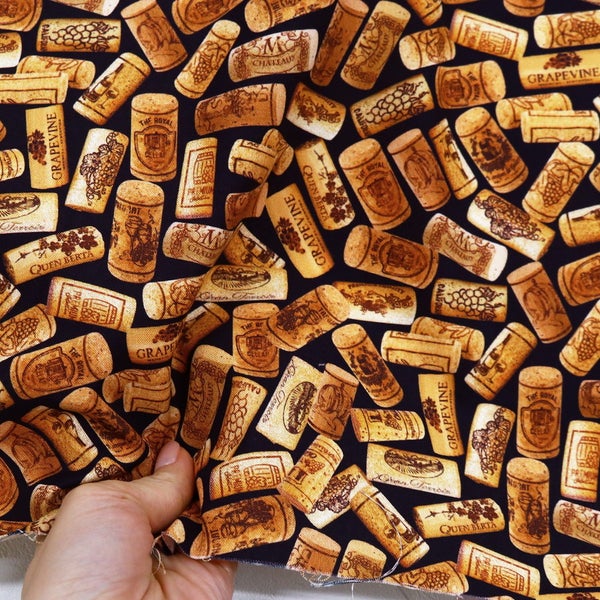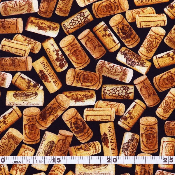 輸入生地 生地 インポート Michael Miller マイケルミラー ワインコルク柄 ブラック 黒 巾約110cm USAコットン オックス調 バッグ ポーチ エプロン 大人おしゃれ キッチン雑貨 ハンドメイド 手芸 布 海外デザイン カフェ風 最低単位50cm~10cm単位の切売 | 手芸材料のネットショップ つくる楽しみ.com