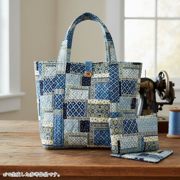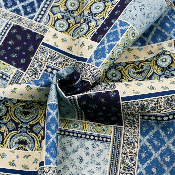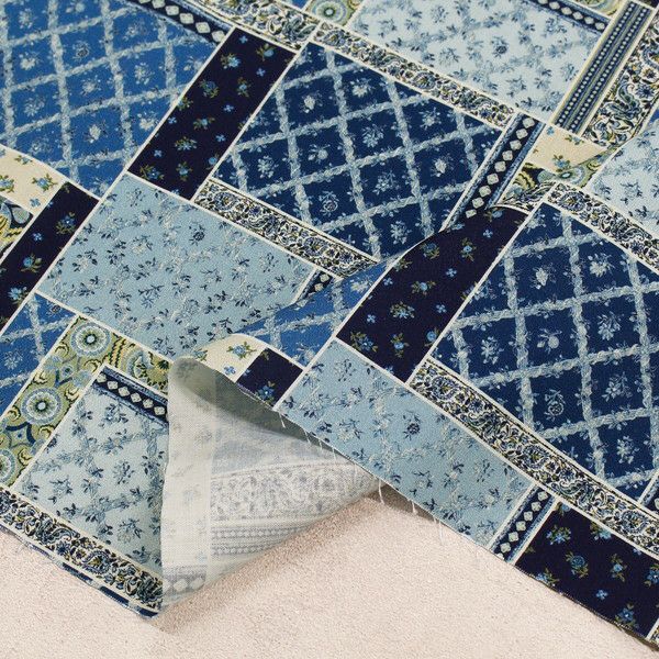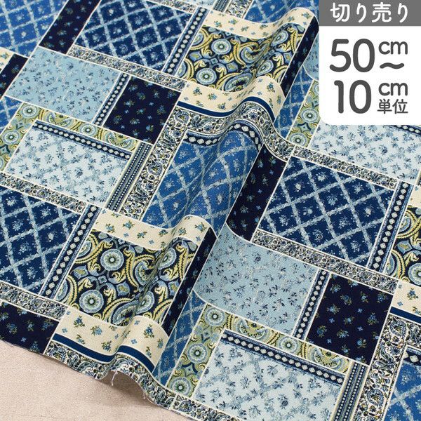 生地 輸入生地 Michael Miller マイケルミラー USAプリント ブルーパッチワーク 巾約110cm 最低単位50cm~10cm単位の切売生地 輸入生地