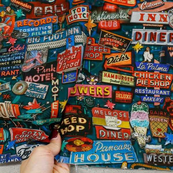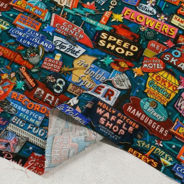 生地 輸入生地 ROBERT KAUFMANロバートカフマン USAプリント ビンテージ看板 巾約110cm 最低単位50cm~10cm単位の切売生地 輸入生地