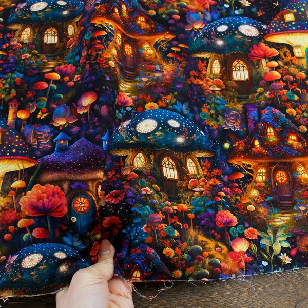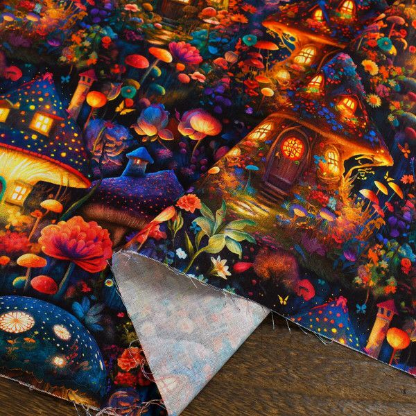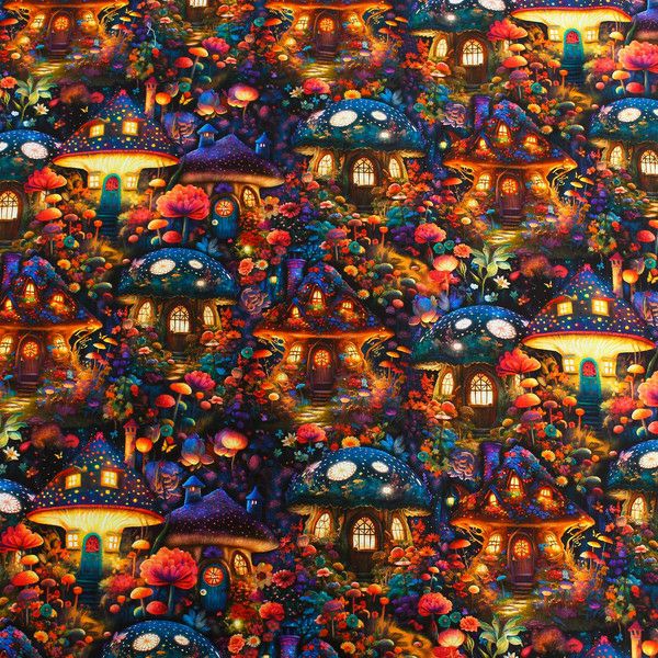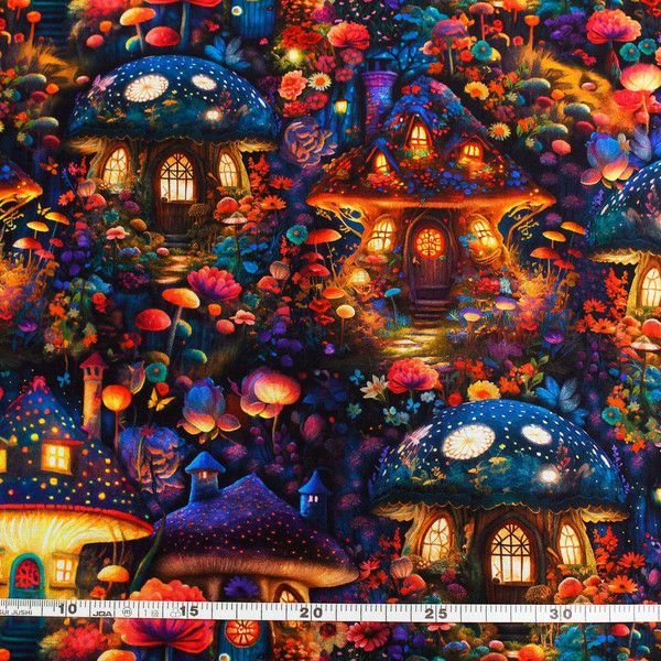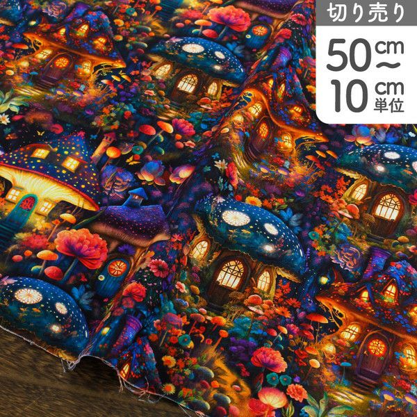 生地 輸入生地 ROBERT KAUFMANロバートカフマン USAプリント 夜の寓話キノコのお家 巾約110cm 最低単位50cm~10cm単位の切売生地 輸入生地 | 手芸材料のネットショップ つくる楽しみ.com