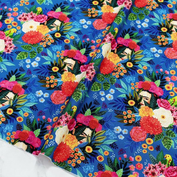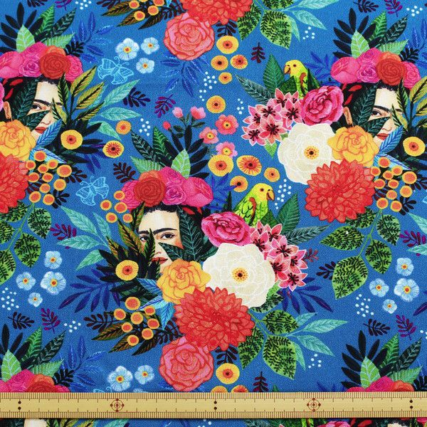 生地 輸入生地 USA生地 ブルー地 カラフルフラワー 賑やかな花たち STELLA ステラ TIMELESS (最低単位30cmから10cm単位)