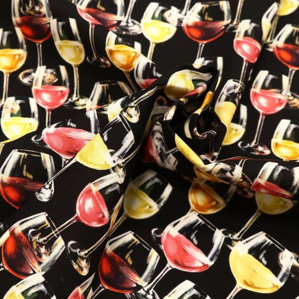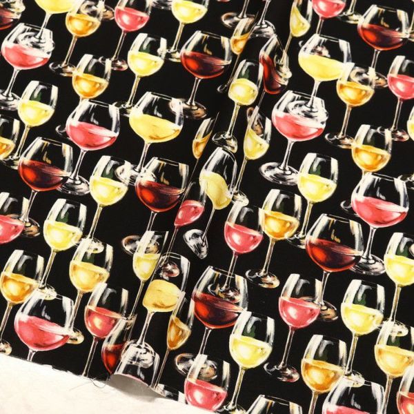 生地 輸入生地 USAプリント生地 いっぱいのワイングラス ブラック地 Treasures タイムレストレジャー STELLA ステラ 巾約110cm (最低単位30cm~10cm単位の切り売り)
