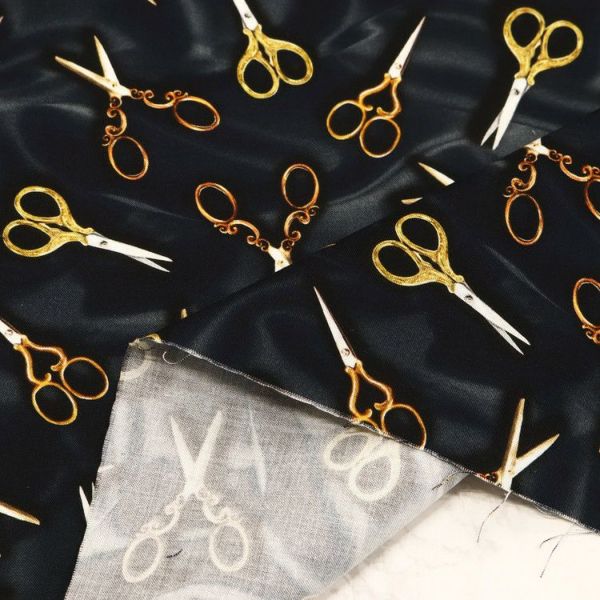 生地 輸入生地 USAプリント生地 アンティークはさみ はさみ柄 ブラック地 Treasures タイムレストレジャー STELLA ステラ 巾約110cm (最低単位30cm~10cm単位の切り売り) | 手芸材料のネットショップ つくる楽しみ.com