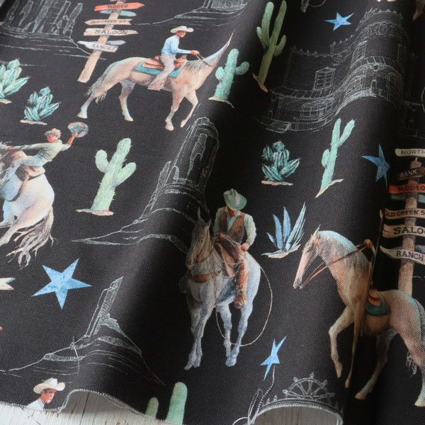 生地 輸入生地 サボテンとカウボーイ USAプリント生地 BAUM バーム (最低単位30cm~10cm単位の切り売り) | 手芸材料のネットショップ つくる楽しみ.com