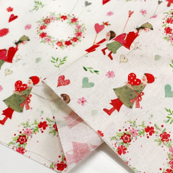 アクファクトゥム acufactum ハートとリース プリント生地 約150cm幅 (最低単位30cm~10cm単位の切り売り) ハート バレンタイングッズ | 手芸材料のネットショップ つくる楽しみ.com