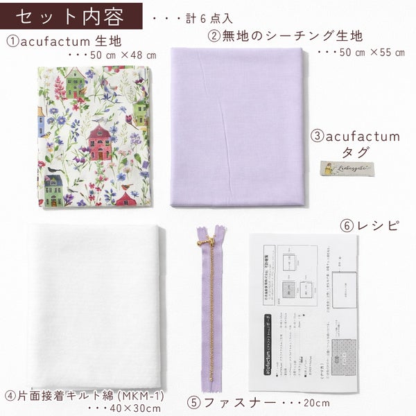 acufactumの絵本のような世界観を、毎日使いたくなるポーチに仕立てられる手作りキットです。