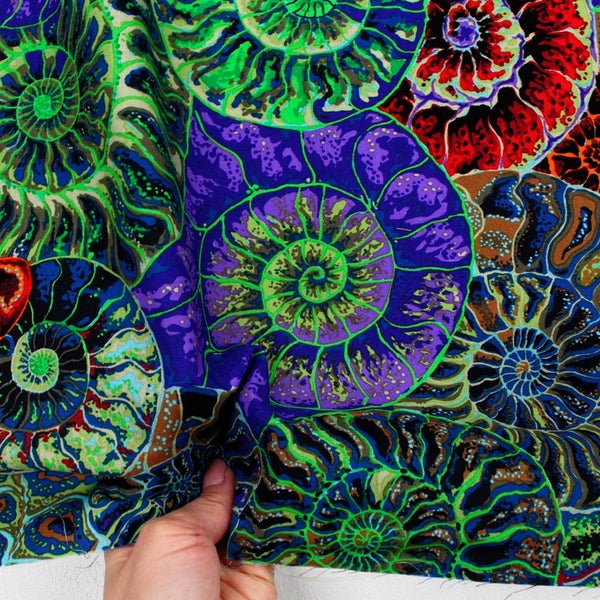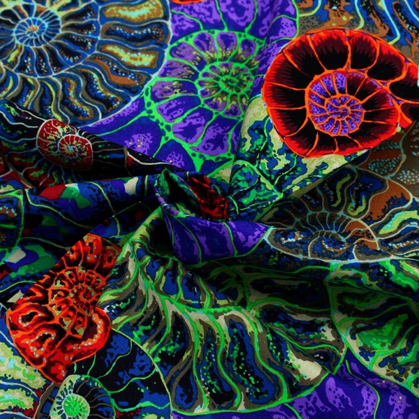 輸入生地 USAプリント生地 グリーン系 シェル柄アート USAプリント生地 Kaffe Fassett ケイフ・ファセット FreeSpirit フリースピリット 巾約110cm 最低単位50cm~10cm単位の切売 | 手芸材料のネットショップ つくる楽しみ.com