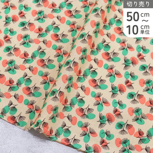 MEB-50CUT-A13 生地 MAISON bornne BENEBENE ベネベネ 韓国生地 ナチュラル 布 ローン生地 北欧ボタニカル リーフ柄 ナチュラル植物モチーフ コットン 布 巾広 巾約138cm 最低単位50cm~10cm単位の切売