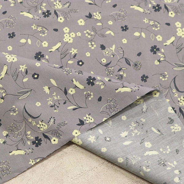MEB-50CUT-A2 生地 MAISON bornne BENEBENE ベネベネ 韓国生地 ナチュラル 布 ローン生地 小鳥と草花 ボタニカル柄 ナチュラル 北欧風 コットン 布 巾広 巾約138cm 最低単位50cm~10cm単位の切売